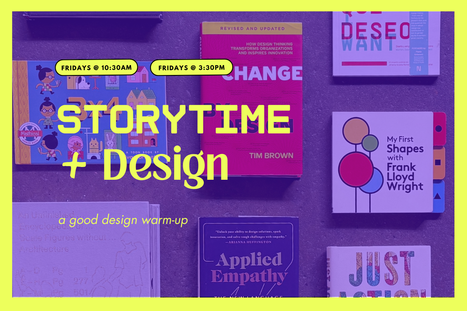 Storytime + Design is a weekly creative experience diving into a book and fun design exercises to grow your creativity and design process. We welcome all ages and identities on the designer journey.